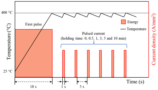 | Number of Pulses | Current Density (A/mm2) | Duration (s) | Total Energy (J/Ω) |