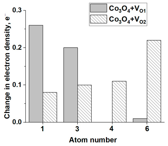 On the other hand, Raman spectra analysis of Co3O4/SBH shows that the A1g peak is shifted into the high-frequency region at 6 cm−1. The shape of the A1g peak and its full width at half maximum (FWHM) also change (Figure 8b). We believe that the observed asymmetry, increased FWHM, and blue shift of A1g are due to the strengthening of Co-O bonds, which is a result of the formation of anionic vacancies in the Co3O4 structure and the redistribution of electron density. Note that, according to DFT calculations, the most likely oxygen removal is from the octahedral oxygen environment.