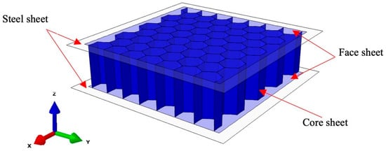 Given the substantial time and material expenses involved, experimental methods are not always practical for thoroughly analyzing the mechanical properties of honeycomb structures. Consequently, finite element simulation emerged as a reliable and efficient alternative for conducting detailed analyses in this field [17]. Finite element simulations have been widely adopted in numerous academic studies to explore and analyze the cushioning performance exhibited by honeycomb sandwich panels. Xie et al. [18] studied the dynamic mechanical behavior and properties of Nomex honeycomb sandwich panels under impact loads. Their research investigated the effects of honeycomb core density, punch diameter, and so on. The results highlighted that the thickness of the panels played an important role in increasing the impact strength of the Nomex honeycomb panels, and the density of the honeycomb cores played a key role in determining the stiffness of the structure. Ma et al. [19] introduced the construction of an origami honeycomb and built an analytical model with the help of FEM. It was concluded that the origami honeycomb is superior to conventional honeycomb structures in terms of in-plane compression strength and energy absorption. Sun et al. [20] conducted a study on the effect of adhesive geometry on the impact damage of bonded aluminum sandwich panels utilizing both experiments and finite element simulations. The results revealed a linear relationship between the depth of honeycomb core damage and the height of the adhesive filet, emphasizing the critical role of adhesive geometry in impact damage.