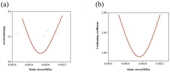 (a) Static stress acceleration curve and (b) static stress cushioning coefficient curve.