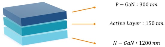 We employed commercially available green light-emitting diode (LED) epitaxial chips with a central wavelength of 550 nm as the raw material, whose primary emitting structure is composed of GaN semiconductor. The epitaxial chip was grown on a sapphire substrate using metalorganic chemical vapor deposition (MOCVD) method. We peeled off the emitting layer from the substrate and processed it to obtain the inhomogeneous phase particles. As shown in Figure 1, these particles comprise three layers of nanostructures: a 300-nanometer-thick p-type semiconductor layer, a 150-nanometer-thick quantum well layer, and a 1200-nanometer-thick n-type semiconductor layer. GaN exhibits stable chemical properties, with a melting point of 1700 degrees Celsius, allowing the p-n junction particles to endure annealing treatments at 850 degrees Celsius under an argon atmosphere for an extended period.