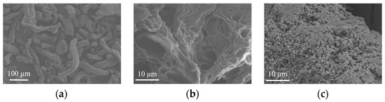 SEM images of HEC, P(HEC-AA-AMPS), and ATP-BF-P(HEC-AA-AMPS) are presented in Figure 3, respectively. Hydroxyethyl cellulose (HEC) exhibited an extensive and substantial distribution with a relatively smooth surface, while the surface of P(HEC-AA-AMPS) featured a porous structure with smooth pore walls and an uneven size distribution. Following the incorporation of ATP and BF, the surface of the highly absorbent polymer underwent substantial roughening, featuring numerous tiny pores and significant porosity, signifying the successful involvement of ATP and BF in the polymerization reaction. The porous structure facilitated the infiltration of water molecules into the interior of the material’s three-dimensional network, thereby enhancing its water absorption properties.