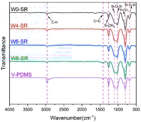 Infrared spectra of V-PDMS and the silicone rubber composites.