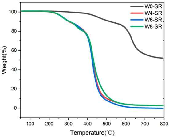 TG curves of W0-SR, W4-SR, W6-SR and W8-SR.