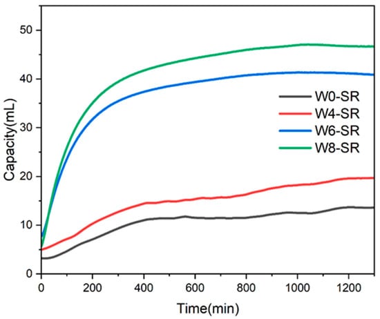 Hydrogen absorption curves of W0-SR, W4-SR, W6-SR, and W8-SR.