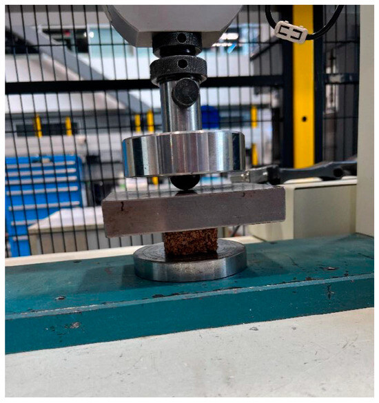 Each test sample was placed between two flat thick steel plates within a Tinius Olsen H50KS universal testing machine (Tinius Olsen Inc., Horsham, PA, USA), shown in Figure 6, where it experienced a progressively increasing compression force at a controlled rate of 3 mm/min.