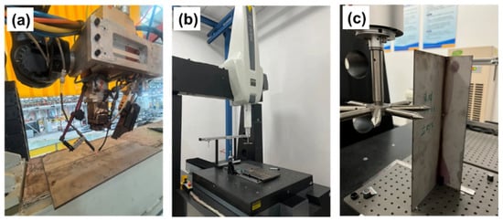 Laser welding of 304L stainless steel and measurement of deformation: (a) Laser welding system, (b,c) Measurement of welding deformation by three-coordinate measurement.