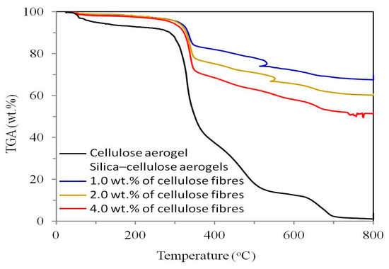 Kim et al. explored the impact of solvent and catalyst concentration on the size of silica in the preparation of cellulose nanofibres/silica nanocomposite [58]. They found that reducing the concentration of ammonium hydroxide resulted in smaller silica nanoparticles and a decrease in silica content to approximately 67.81 wt%.