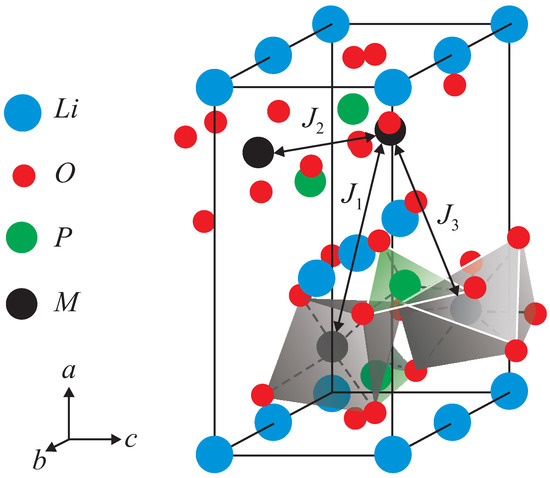 - Dai, D.; Whangbo, M.-H.; Koo, H.-J.; Rocquefelte, X.; Jobic, S.; Villesuzanne, A. Analysis of the spin exchange interactions and the ordered magnetic structures of lithium transition metal phosphates LiMPO4 (M = Mn, Fe, Co, Ni) with the olivine structure. Inorg. Chem. 2005, 44, 2407. [Google Scholar] [CrossRef]