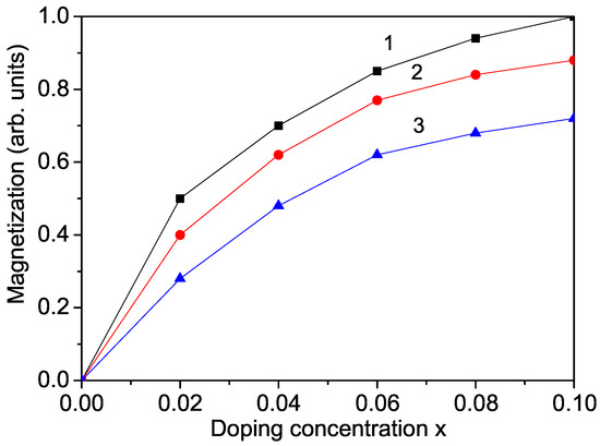 3.1. Dependence of the Magnetization on the Doping with Nb, Ti, and Al at the Li site in LFPO