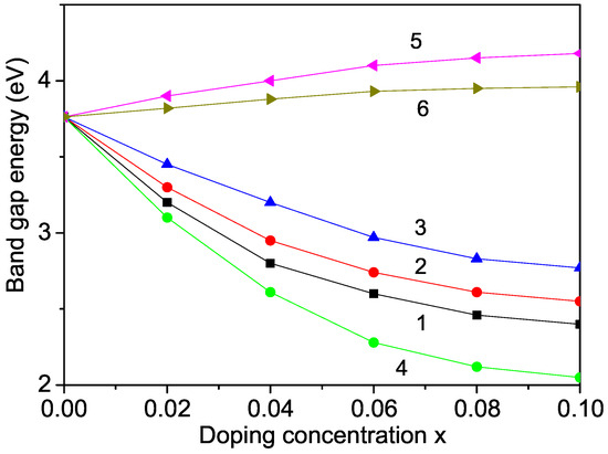 3.2. Dependence of the Band-Gap Energy on the Doping with Nb, Ti, and Al at the Li Site in LFPO