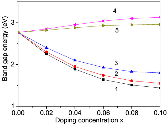 3.3. Dependence of the Band-Gap Energy on the Doping with Nb, Ti, and Al at the Li Site in LNPO
