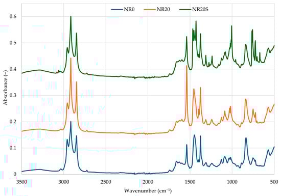 3.2. Analysis of the Structure of NR Vulcanizates Filled with Oak Bark