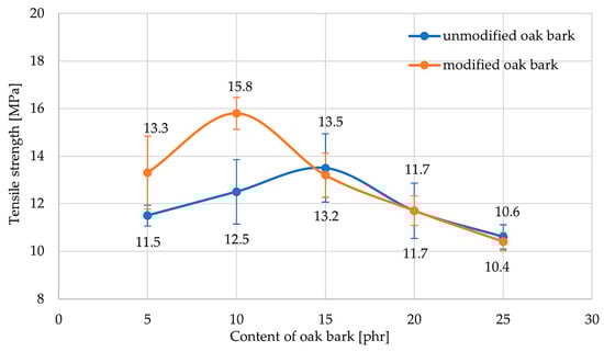 Effect of Modified and Unmodified Oak Bark (Quercus Cortex) on the Cross-Linking Process and Mechanical, Anti-Aging, and Hydrophobic Properties of Biocomposites Produced from Natural Rubber (NR)