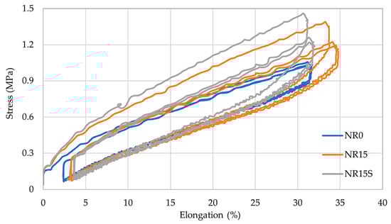 3.4. The Influence of Oak Bark on the Mechanical Properties of NR Vulcanizates