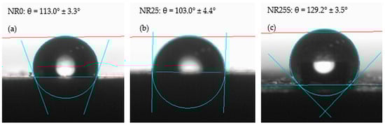 3.5. The Influence of Oak Bark on the Hydrophobicity of NR Vulcanizates