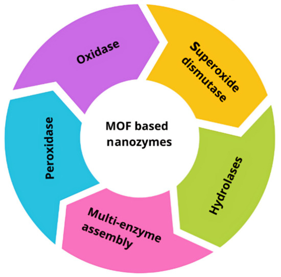MOF-based biosensors are at the forefront of contemporary analytical science, with extensive research dedicated to the detection of a broad range of analytes [171]. The inherent structural functionality of MOFs—owing to the presence of groups such as -NH2 or -COOH within their linkers—facilitates critical interactions like p-p stacking, hydrogen bonding, and electrostatic forces with probe biomolecules. This makes MOFs an exceptional substrate for biosensing applications. The emerging class of bimetallic MOFs is garnering attention in electrochemical biosensing due to their enhanced catalytic activities. For instance, the bimetallic ZrHf-MOFs/carbon dots composite developed by Gu et al. [172] demonstrated exceptional sensing performance for HER-2 cells, underscoring the potential of combining diverse metal elements to introduce new functionalities and achieve synergistic effects that boost the biocatalytic properties of MOFs. Figure 5 shows the different activities of typical MOFs explored as nanomasses [152].