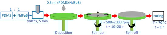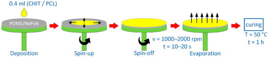 Spin-Coating Fabrication Method of PDMS/NdFeB Composites Using Chitosan/PCL Coating