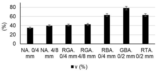 Figure 3. Intergranular bulk porosity (v) of the aggregates [].