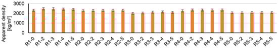 The control sample (R1-0) was designed as a Portland cement and natural aggregate-based mortar with a water/cement ratio of 0.6, according to Table 3 [].