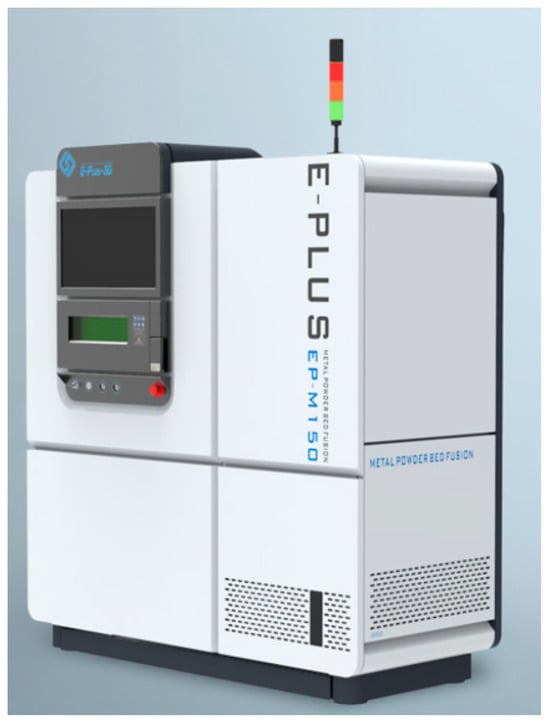 The LAM equipment used in this paper is the EP-M150 small-size mainstream metal AM equipment produced by Beijing e-Plus 3D Tech. Co., Ltd., Beijing, China. as shown in Figure 1. The equipment includes a printing system, a control system, and a filtering system. The printing system utilizes a maximum laser power of 500 W, with a minimum spot diameter of the laser beam at 40 μm, and a maximum laser scanning speed of 8000 mm/s. The size of the forming chamber of the printing system is Φ153 × 100 mm3. In order to prevent oxidation of the metal powder during the forming process, a sealed cavity is utilized, and argon gas is introduced as a protective gas, with an oxygen content of less than 0.02%.
