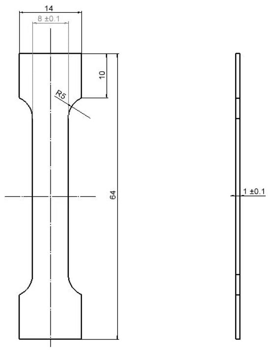 The specific size of uniaxial tensile specimen, Unit: mm.