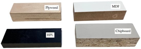 Wood-based panels are becoming more and more widely used in many areas of industrial production [,,,]. Their growing popularity is determined by numerous advantages over natural wood []. Wood-based materials are much cheaper, more homogeneous and isotropic, more resistant to fungi, insects, etc. [,,]. Moreover, they allow the creation of flat surfaces of any dimensions—which is impossible in the case of solid wood. Therefore, the fact that the capabilities of modern wood-based panels can be adapted to specific applications, along with their strength properties and affordable price, make them a real solution for reducing the demand for solid wood [,,,,].