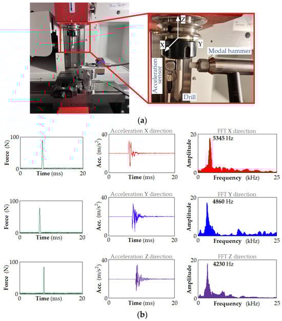 In general, the vibration signals measured in the X, Y and Z directions are influenced by the type of material being processed. The results clearly show that vibration spectra can be used to identify the workpiece material. Various types of information can be extracted from the analysis of vibration signals in both the time and frequency domains. These results show that there are specific differences related to the material removal mechanism between drilling processes of different materials, detectable by acceleration signals. This means that evaluating the signal in the frequency domain will enable clear identification of the material.