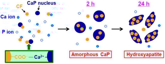 Schematic showing the formation of CF-immobilized CaP particles in the supersaturated CaP solution.
