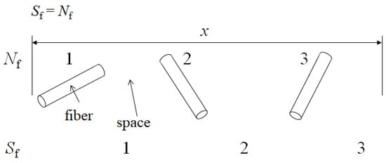 This would be independent of fiber orientation, θ, with respect to x. And apply to the random fiber orientation of the SGFRP-BMC panel center. Moreover, since both Nf and Sf are dimensionless quantities, they can be put into any dimensional coordinate system; hence, Sf is given in three dimensions as “fiber spacing density” (mm−3).