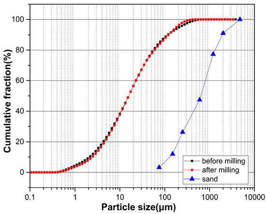 The experimental investigation employed ordinary Portland cement (OPC) as the principal binding agent. Table 1 presents the chemical and physical characteristics of OPC as per the specifications outlined in ASTM C150 [26]. Fine aggregates, specifically natural sand, with a maximum size of 4.75 mm conformed to the grading criteria for concrete aggregates outlined in ASTM C33-2003 [27]. Wheel washer sludge, both untreated and treated, was employed as a supplementary cementitious material. Comprehensive analyses encompassing chemical, mineralogical, and physical properties such as specific gravity, surface area, and particle size distribution were conducted, with the findings summarized in Table 2 and Figure 1 and Figure 2, respectively. To enhance the workability of the cement mortar, a polycarboxylic water reducer was integrated, with its physical and chemical attributes detailed in Table 3.
