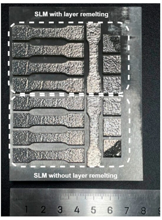 After the forming of the SLM process, the samples were cut from the substrate by wire cutting, cleaned with ethanol and ultrasonic waves, and dried in a vacuum drying oven. Three densitometric measurements were performed and averaged for each sample using Archimedes’ principle, respectively.