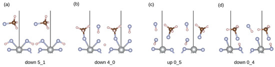 Structures in group I with the lowest adsorption energies are divided into four different subgroups (a–d). The initial orientation for each structure is written below. Ni atoms are represented in gray, F atoms in blue, C atoms in brown and H atoms in white color.
