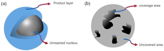 Schematic diagrams of two kinetic models: (a) unreacted core model, (b) surface coverage model (modified according to [48]).