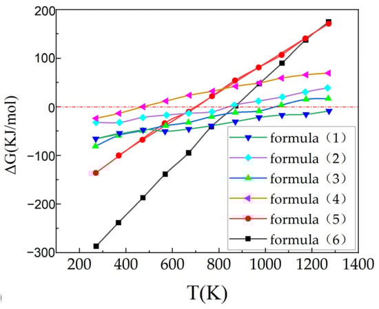 Gibbs free energy (ΔG) of reaction as a function of temperature (according to Tu et al. [57]).