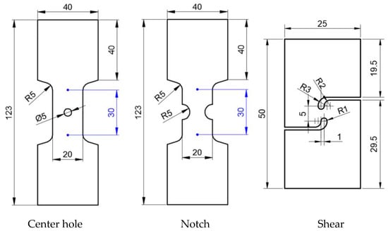 Figure 8 shows the force–displacement curves of three fracture specimens before and after pre-straining and heat treatment. From the graphs, it is evident that for AA6016, after pre-strain and heat treatment, the maximum load increases, while the failure displacement decreases. It is also noticeable that all three fracture specimens achieve their maximum load and the greatest reduction in failure displacement at a pre-strain level of 12% and a heat treatment temperature of 200 °C. The center hole specimen, at a pre-strain level of 12% and a heat treatment process of 200 °C for 30 min, experienced an increase in maximum load by 514.1 N, while the failure displacement decreased by 2.0 mm. For the notched specimen, under the same pre-strain level and heat treatment, the maximum load increased by 332.7 N, and the failure displacement decreased by 1.4 mm. Finally, for the pure shear specimen, at the same conditions, the maximum load increased by 29.3 N, and the failure displacement decreased by 1.2 mm. Similar to Section 4.1.1, at pre-strain levels of 6% and 12%, an increase in baking temperature and baking time lead to an enhancement in the maximum load required for the fracture of the test specimens. However, this trend was not observed at the 18% pre-strain level. This phenomenon will also be explained in Section 4.1.3.