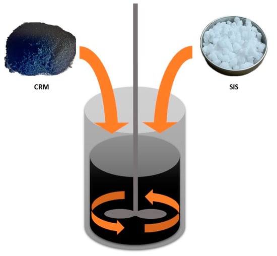 In this study, the production of the CRM+SIS-modified asphalt binder involved the sequential addition of a CRM followed by SIS to the base asphalt binder (Figure 3). The proportions of the CRM were 5% and 10% for each binder, and 10% SIS was added to all binders. The blending temperature was set at 200 °C, and the process followed these steps.