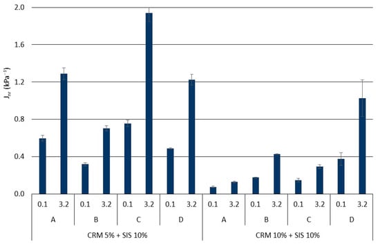 However, when evaluating Jnr as a factor, no significant difference was observed across varying loads. This is likely because the result of the factor is less than 10 kPa−1, indicating a limited range that does not allow for the sensitive measurement of the binder’s SI. Therefore, for a more precise evaluation of SI, it is deemed preferable to utilize % rec as a factor, given its broader range of values spanning from 0 to 100%, rather than deriving SI based on Jnr evaluations. Consequently, while the ASTM D7173 guidelines permit the assessment of binder storage stability through DSR and MSCR tests, achieving consistent results regarding the extent of separation of the modified binder between G*/sin δ, Jnr, and % rec parameter values has proven challenging.