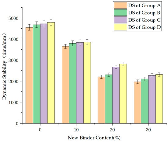- As the additional binder content increases, the rutting resistance of recycling asphalt mixtures significantly decreases. With each 10% increase in new binder content, the dynamic stability of recycling asphalt mixtures decreases by nearly 19%. Additionally, the addition of new binder can enhance the crack resistance of high-dose RAP mixtures, but it reduces their rutting resistance, especially at high levels of new binder addition. For instance, when an extra 20% of new binder is added, the crack resistance of recycling asphalt mixtures increases by 27%, but their rutting resistance decreases by 51%.