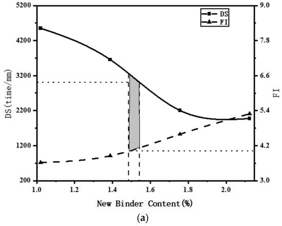 - The dynamic stability and flexibility index of the mixture exhibit a strong linear relationship with the dosage of new binder, the aging degree of RAP, and the dosage of RAP (R2 = 0.954, 0.956). Among these factors, the dosage of new binder has a significant impact.