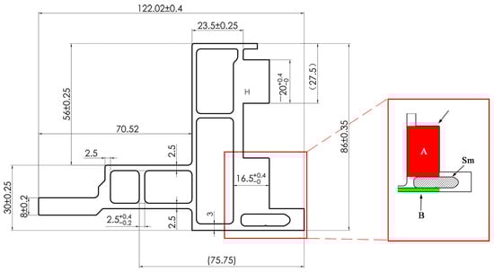 Dimensional tolerances and key structures of profiles (A: The area of thick wall, B: The area of thin wall, Sm: small mandrel).
