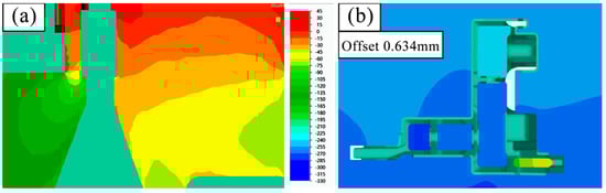 (a) Pressure difference on both sides of core C and (b) Y-direction deflection in the initial design scheme.