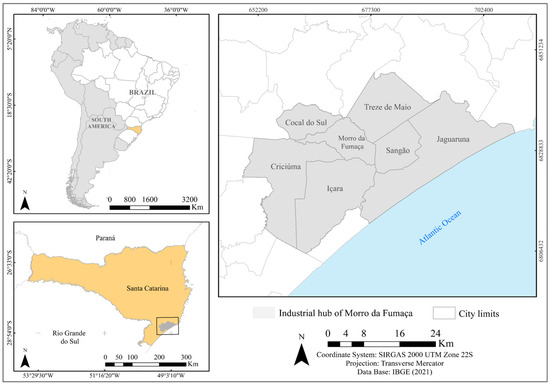 Geographic representation of the industrial hub of Morro da Fumaça, which is the focus in this study. Source: [35].