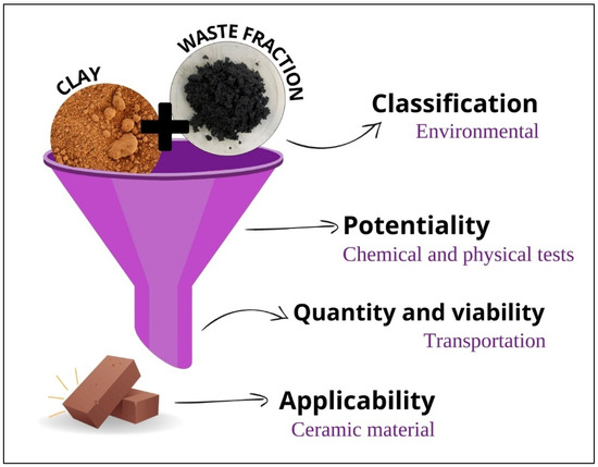 Figure 2 schematically illustrates how the CPQvA methodology can assist in the valorization of the studied residual fraction within the clay ceramic industry.