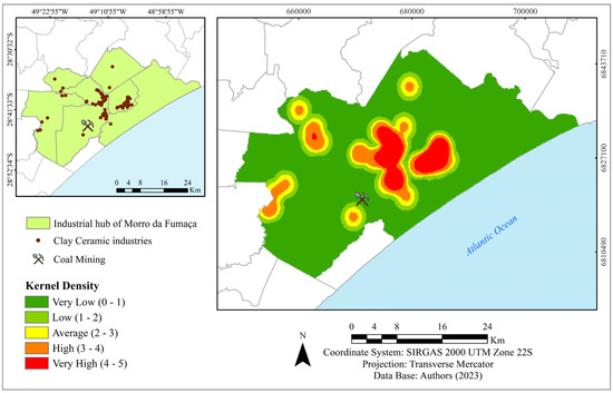 Map of the Morro da Fumaça Ceramic hub area (left) and schematic representation of industry density (right). Source: [61].