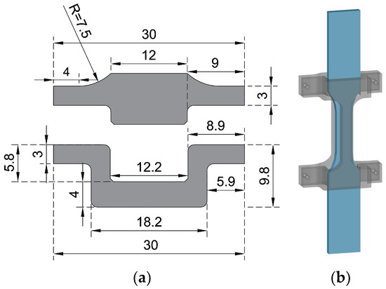 Monotonic tensile tests and LCF tests of Zn-22Al alloy were carried out to contribute to the limited data currently available on seismic energy dissipation materials used in seismic dampers. As mentioned in the previous section, a plate-shaped energy dissipation metal is more suitable for seismic dampers. Therefore, the specimens utilized in this study were plate-shaped and wire EDM-cut from the plates obtained in Section 2.3, following the standards of ASTM E606/E606M-21 as well as Chinese standards (GB/T 24172-2009, GB/T 228.1-2021), as illustrated in Figure 3.