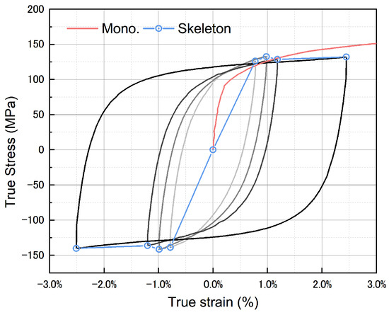 Cyclic skeleton curve and monotonic stress–strain curves.