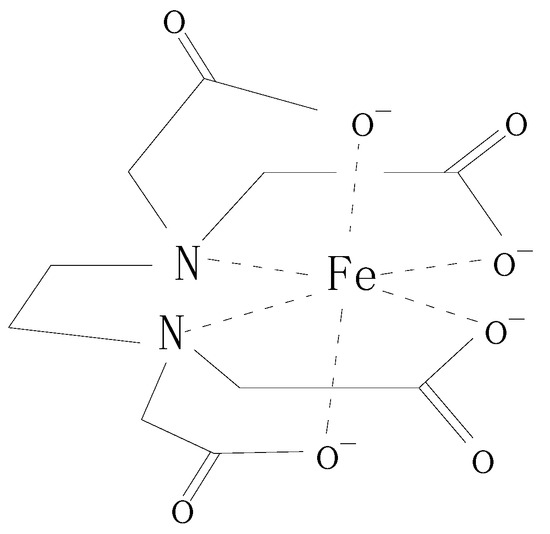 Figure 2. The chelate ring structure of inhibitor molecule with steel surface ion atom. - The aromatic groups that are connected to the carbonyl groups can serve as a barrier layer (steric hindrance effect) to separate the steel surface from the corrosive medium. The electronegativity of the aromatic groups can repel chloride ions away from the steel surface and therefore decrease the corrosion of chloride ions to the reinforced steel;