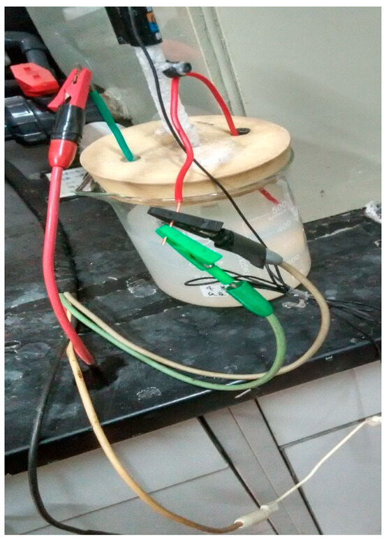 After drying in a desiccator and weighing, the samples were immersed in a 400 mL solution containing 3.5% of NaCl and different amounts of the inhibitor (0, 1, 2, 3, and 4%) for 7 days (Figure 3). Afterwards, they were washed first with water. Then they were washed via a pickling solution prepared at a concentration ratio of 1:1:10 of water, hydrochloric acid, and C6H12N4(hexamethylenetetramine). Finally, the samples were ultrasonically cleaned with alcohol, dried with a desiccator, and weighed using an analytical balance. An average weight loss for each test group was calculated with values from three parallel samples.