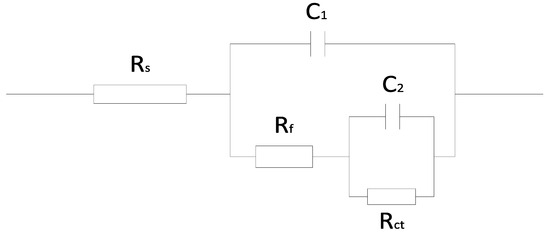 The equivalent circuit model applied to fit the EIS experimental data.